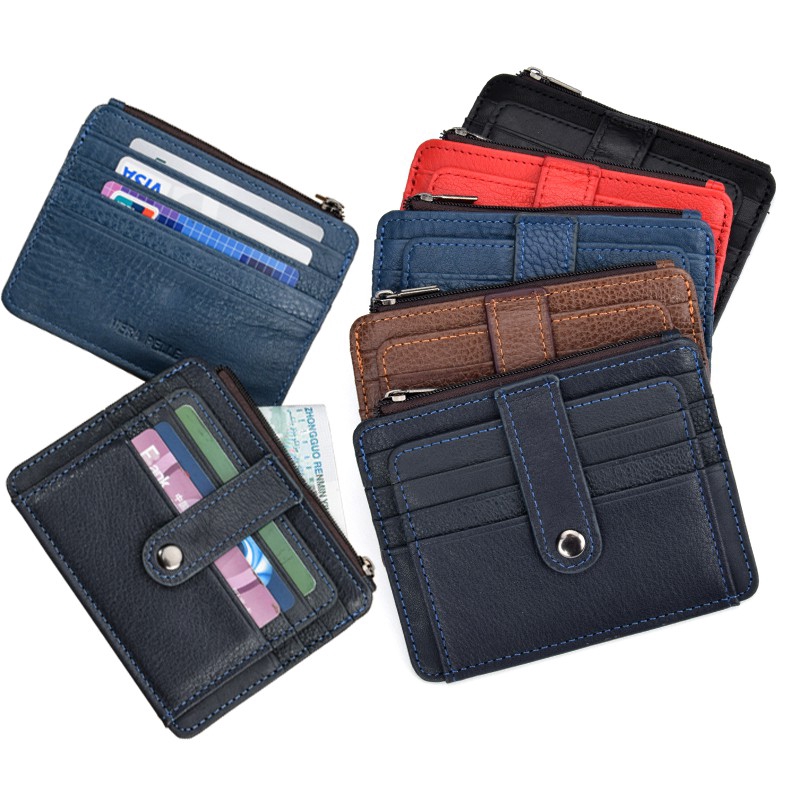 Solid Color Purse Men's & Women's Cowhide Wallet Bank Card ID Sets 11 Card Slots Card Holder Purse 8881